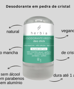 O Desodorante Natural Kristal Deo Stick é livre de todas as químicas nocivas para a saúde e o meio ambiente mantendo a pele fresca e livre do mal cheiro.